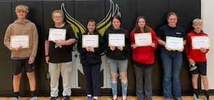 Students recognized (L-R): Drake B, Kam S, Amlaeh J., Morgan H., Maria H., Maci C., and Kolt D.