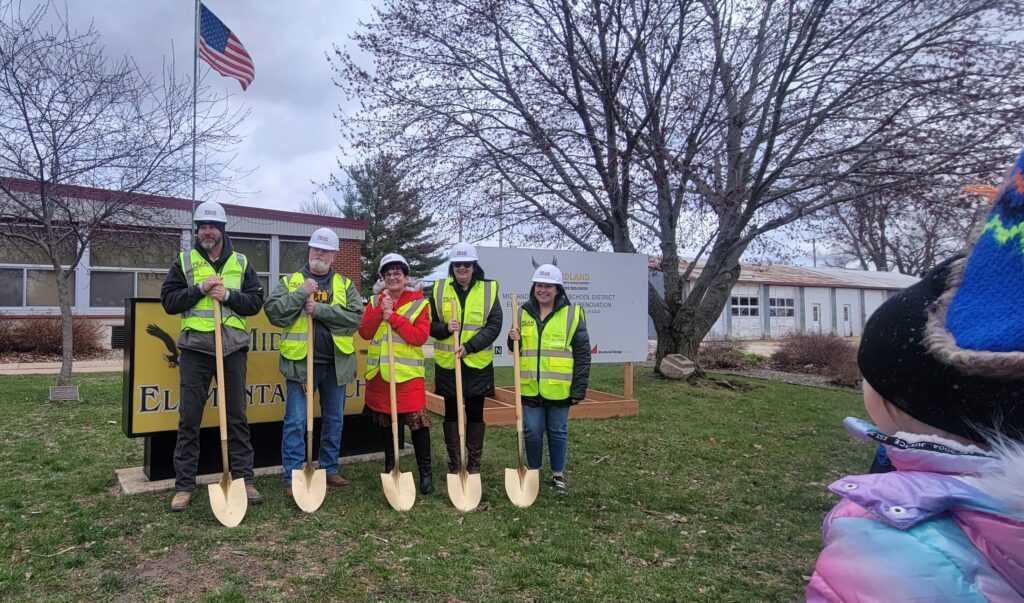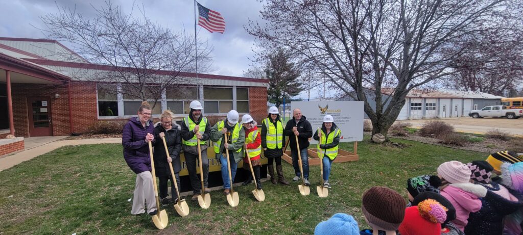 Midland Elementary in Oxford Junction held their groundbreaking ceremony on April 4, 2024. All of the students, staff, some board members and OPN (architects) representatives were in attendance. We are excited for this upcoming project that will make our school a safer space for all. Dirt work has already begun with a tentative completion in 2026.