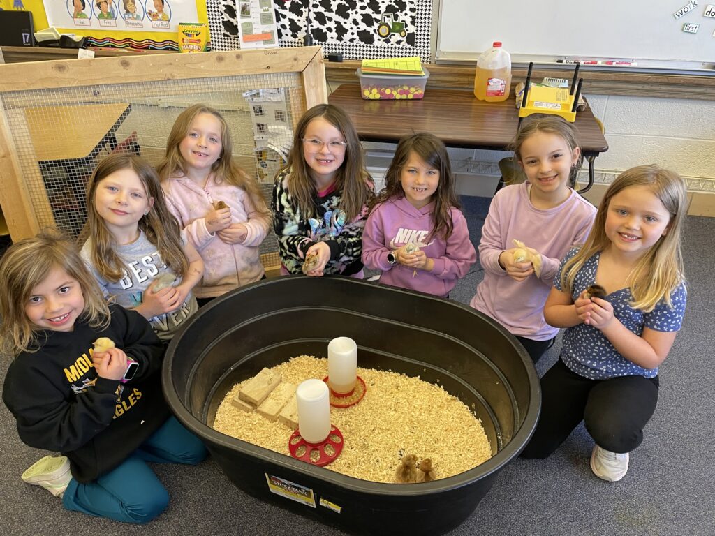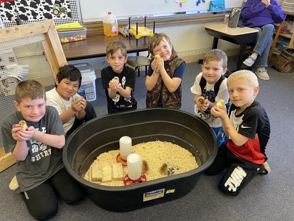 Mrs. Gnade’s 1st Grade class has hatched chickens. She used the Iowa Ag Literacy Foundation Grant to support this program.