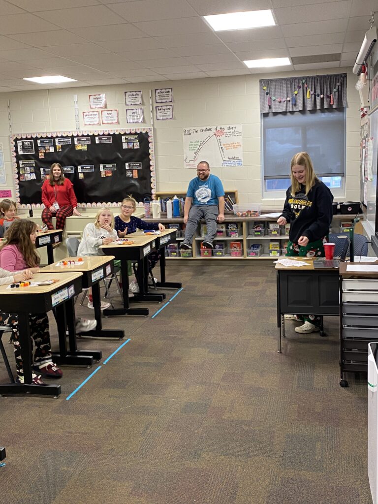 Members of the HOPE Group spread Holiday cheer by helping facilitate festivities with Elementary students.