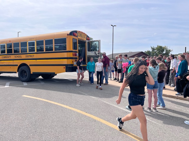 Yearly bus evacuation drills are held in both buildings where Mr. Stender goes through how to safely exit a bus in case of emergency. At the elementary each grade level goes through it with him individually, at the secondary the kids were trained in two groups by grade level. Thanks Mr. Stender for always thinking of our safety and reminding us of the safety procedures.